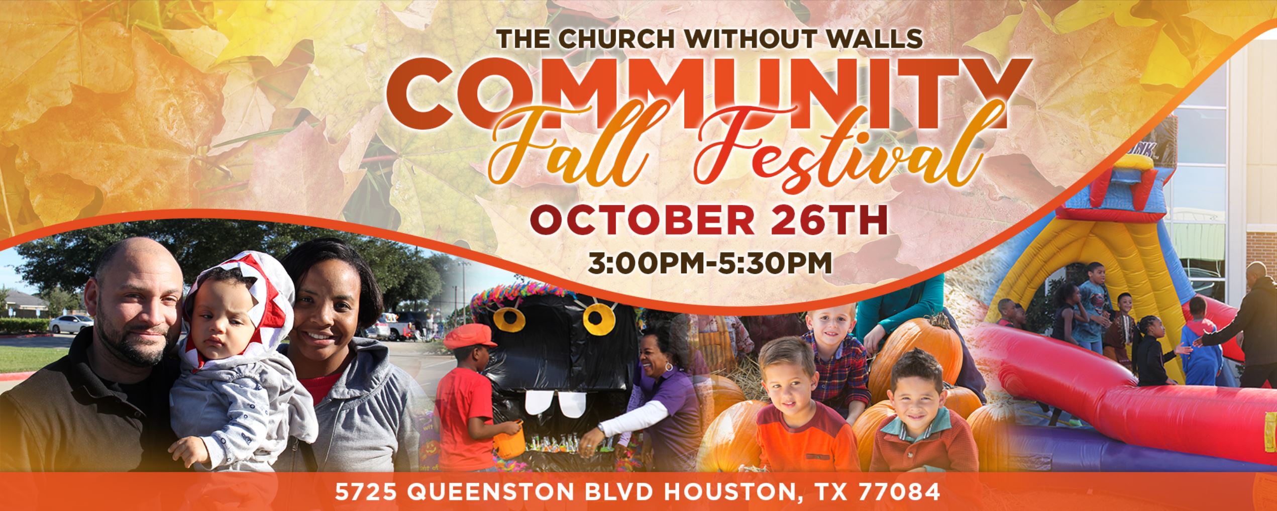 Come and celebrate with The Church Without Walls at our Community Fall Festival Bring your kids & costume; costume for Trunk or Treat, bounce houses, carnival games, CANDY and prizes! Invite your friends and families in the community. Children and Youth of all ages are welcome.